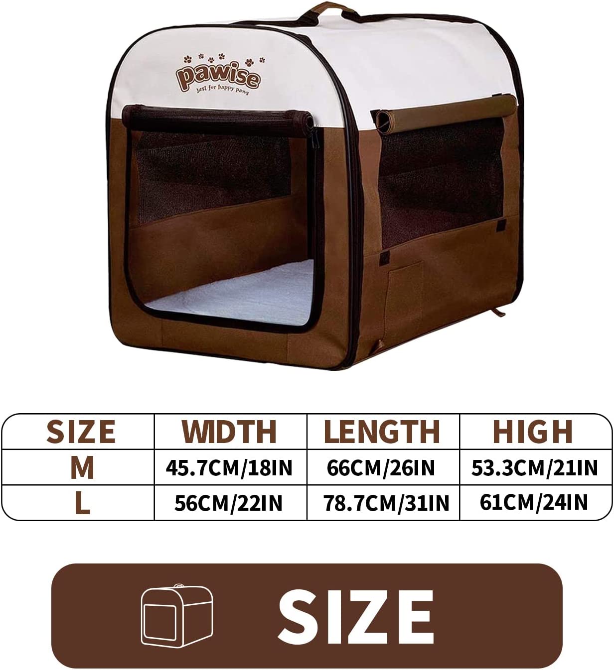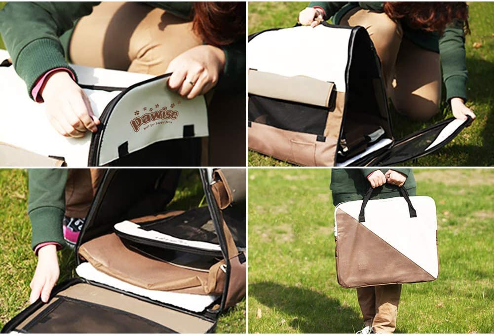 - PORTABLE AND EASY TO TRAVEL-Foldable dog crate is suitable for indoor and outdoor.This foldable soft-side dog travel crate is much lighter than iron puppy crate, and it is convenient to disassemble and easy to put away.Dog crate can also be placed in the back seat of the car for dog to seat, and its rounded corners can make sure that auto interior is not damaged. Please measure the dog's height and weight before placing an order.