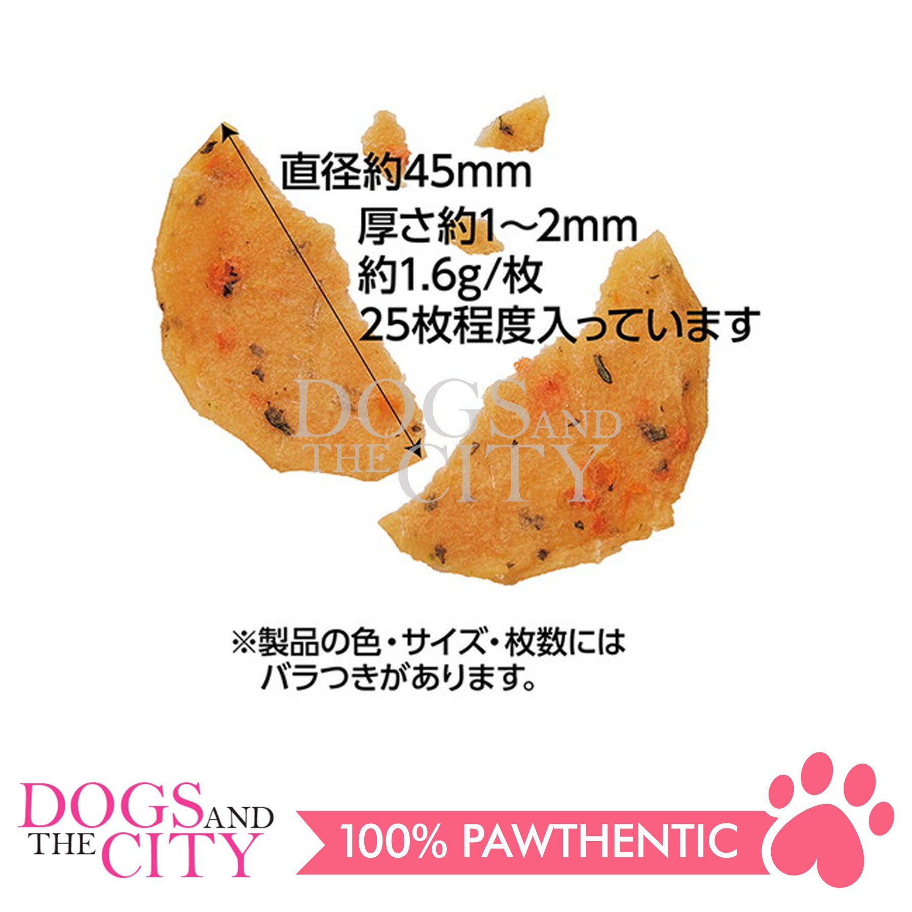 No food additives are used, and only high-quality protein-rich chicken fillet and nutritious green and yellow vegetables are used. Super-thin fillet chips that are crisp and easy to eat as they are or cut into your preferred size. Grain-free, so it's safe for dogs with grain allergies. Ministry of Agriculture, Forestry and Fisheries certified bird heat treatment plant manufacturing.