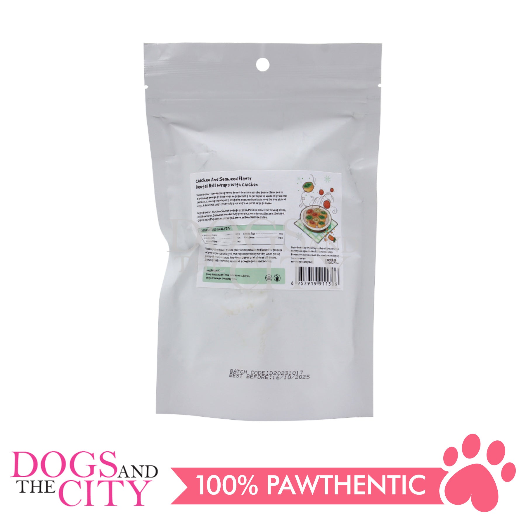 PETTO BAKE ARTISAN DOG TREATS Chicken and Seaweed Dental Roll Fluffy Wraps with Chicken 100g